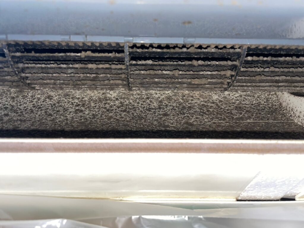 さらにススカビは、エアコン内部のプラスチックにも繁殖します。 とても胞子が軽く部屋の空気中に浮遊していることも多いので、エアコンに吸い込まれやすいのです。