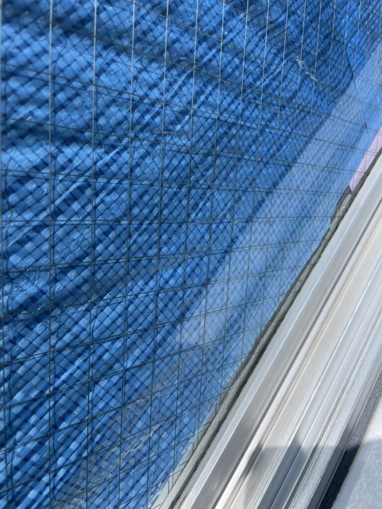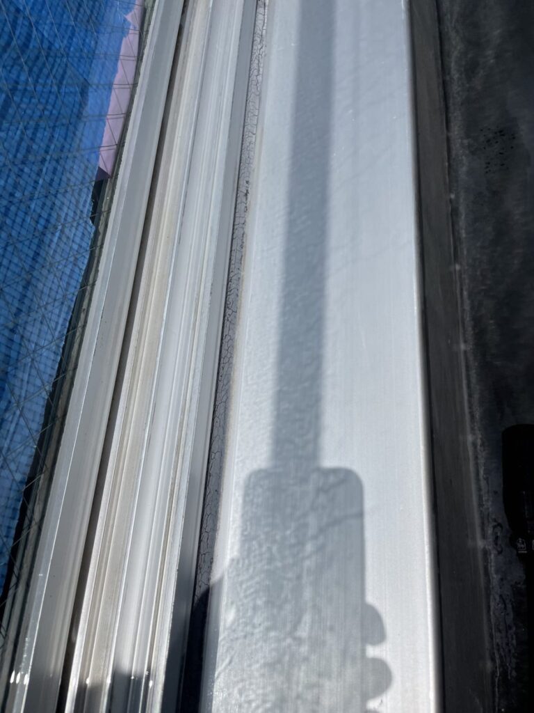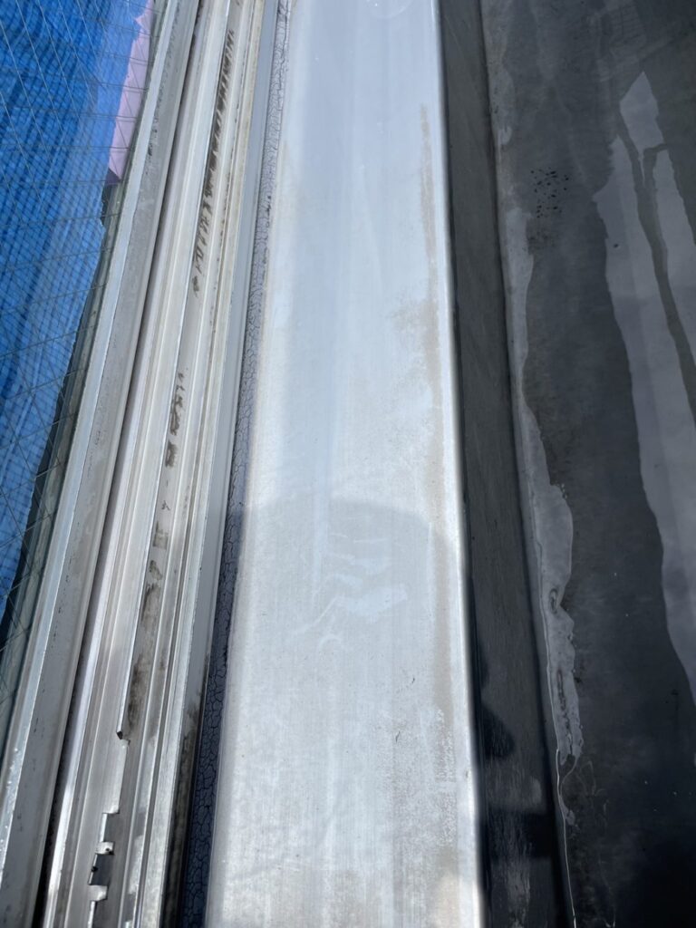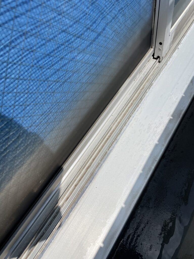 通常クリーニングで落ちなかったガラス・サッシの黒ずみの除去。砂埃と雨水が固着して出来た汚れです。