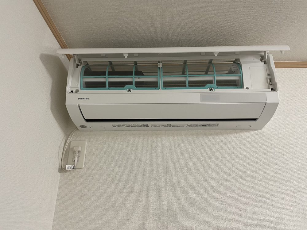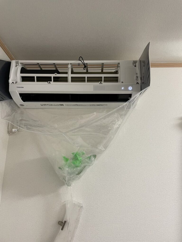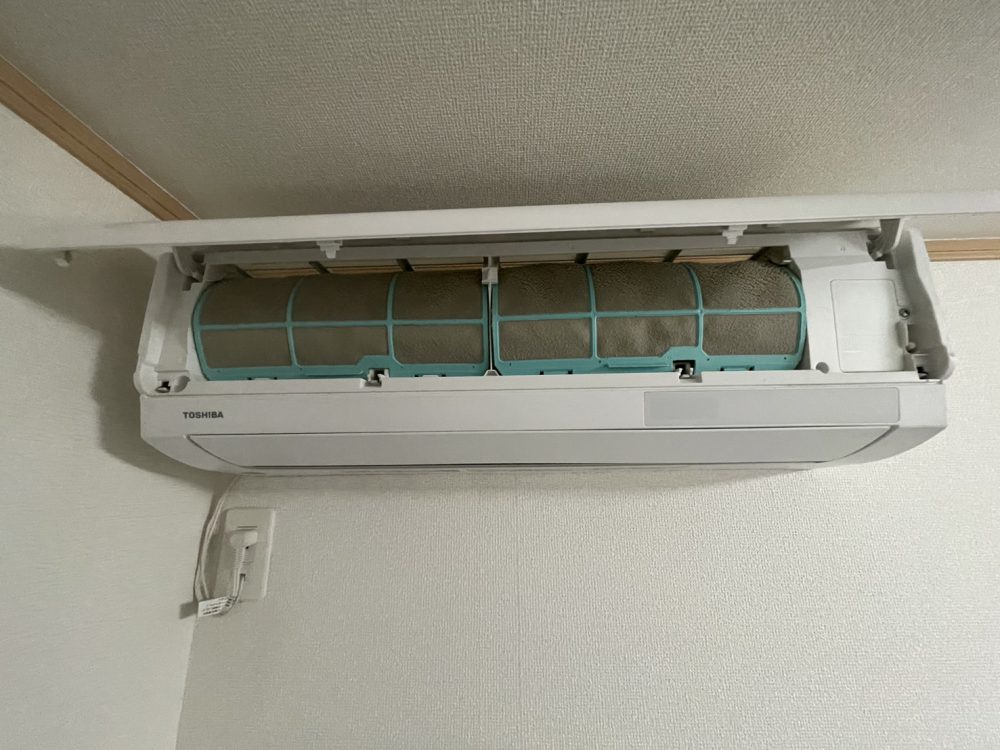 毎年洗浄を行っているお客様の寝室のエアコン。まめな手入れで汚れも少ないです。