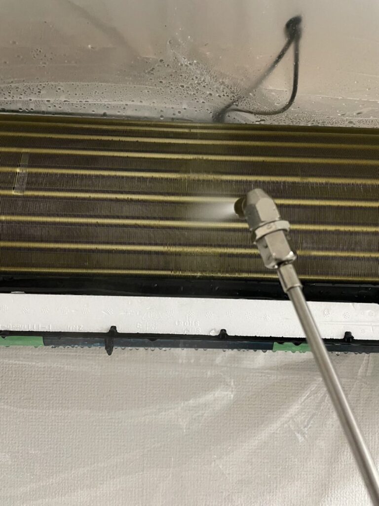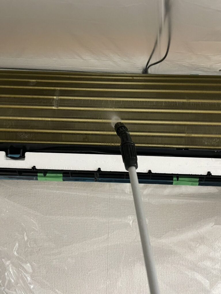 ウイルスバスターウォーターでエアコン全体の高圧洗浄!